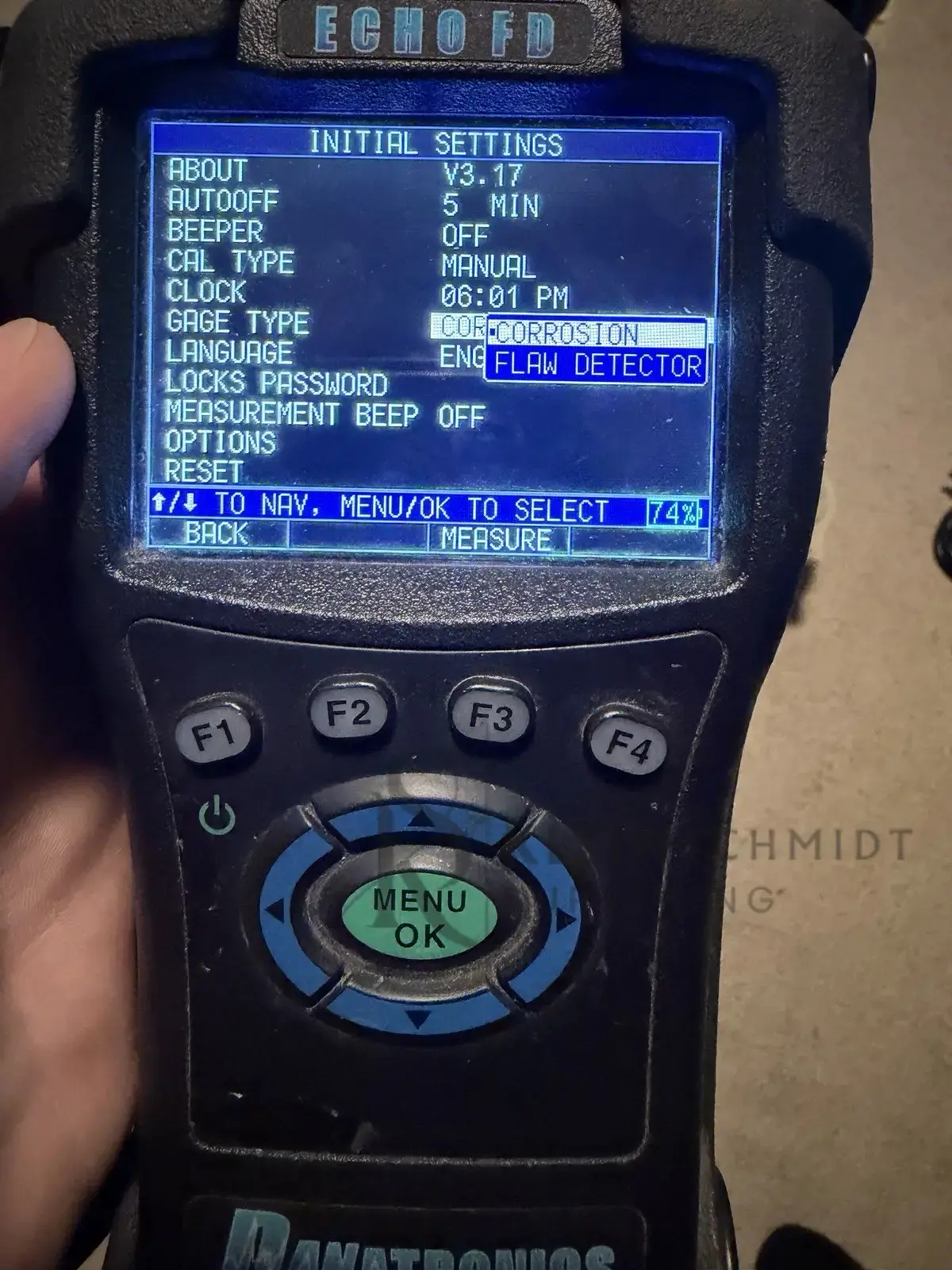 Range: Thickness range depends on gage type, probe selection and material conditions. Typical range in corrosion mode, .020″-23″ (.508 – 584 mm)
